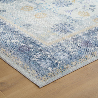 Tapis lavable et facile à nettoyer, motif floral traditionnel bleu calme, durable, anti-éclaboussures, adapté aux animaux de compagnie, antidérapant, pour le salon