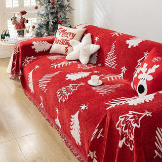 Housse de canapé en chenille Merry Christmas, rouge festif, avec motif arbre et étoile, pour décoration de Noël