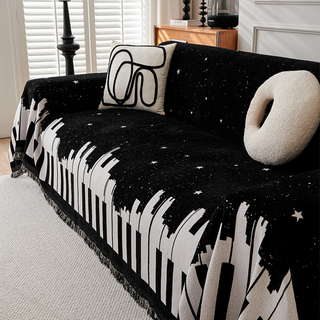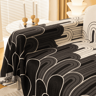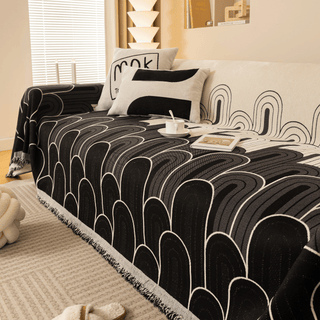 Housse de canapé confortable réversible géométrique noire - Vente finale
