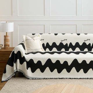 Housse de canapé chic monochrome rayée Serenity Harmony