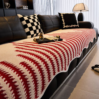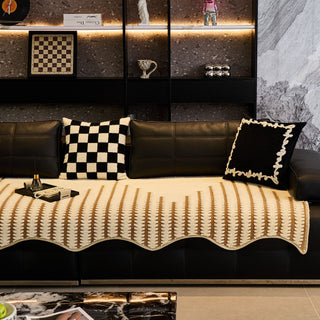 Housse de canapé antidérapante en peluche à rayures tuftées de luxe