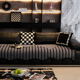 Housse de canapé confortable réversible géométrique noire - Vente finale