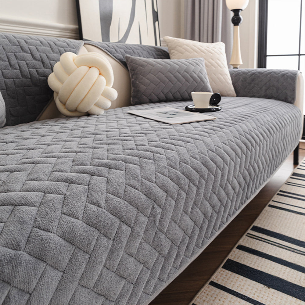 Sublimez votre salon avec notre housse de canapé antidérapante en velours doux à chevrons. Conçue pour la saison froide, cette housse allie la douceur luxueuse du velours lait à un élégant motif à chevrons, pour un confort et un style incomparables. Confectionnée en velours épais de haute qualité, elle offre confort, durabilité et protection à votre canapé.