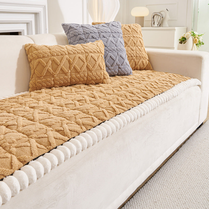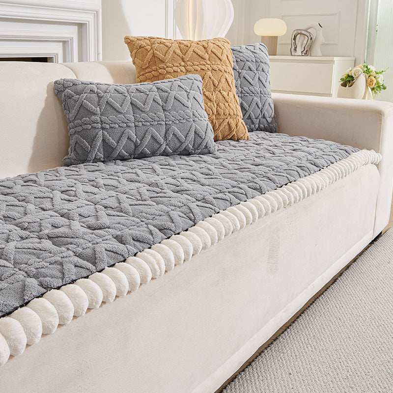 Apportez chaleur et texture à votre intérieur avec notre housse de canapé antidérapante en velours Geo Plush : un mélange douillet de sophistication et de confort. Ornée d'un motif géométrique en relief, cette housse épaisse à poils courts ajoute de la profondeur et de l'élégance à votre décoration tout en protégeant durablement votre canapé.
