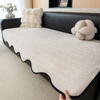 Sublimez votre espace de vie avec la housse de canapé antidérapante en chenille à bords ondulés, un équilibre parfait entre charme moderne et protection pratique. Sa bordure ondulée distinctive, rehaussée d'un passepoil noir audacieux, apporte une touche design saisissante, tandis que son tissu chenille résistant offre un toucher doux et confortable. Dotée d'un envers antidérapant, cette housse reste bien en place, idéale pour les familles et les propriétaires d'animaux.