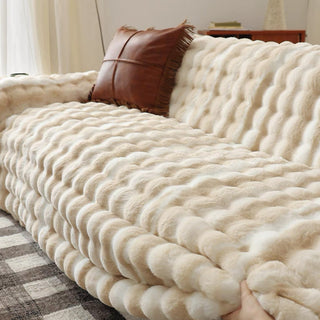 Housse de canapé élégante en peluche ondulée résistante aux rayures