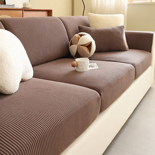 Housse de canapé extensible en velours côtelé à rayures verticales – Protection intégrale anti-rayures pour animaux de compagnie