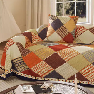 Housse de canapé en chenille Patchwork Charm résistante aux rayures