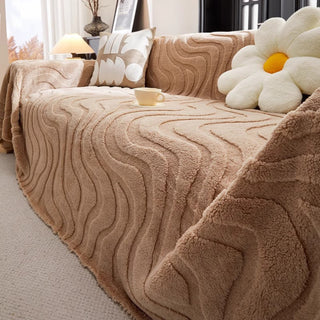 Housse de canapé élégante en peluche ondulée résistante aux rayures