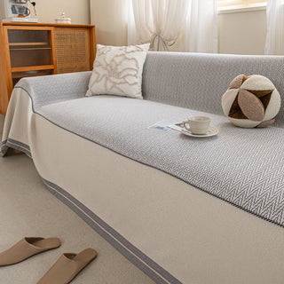 Housse de canapé en chenille à chevrons raffinée et résistante aux rayures