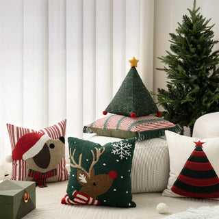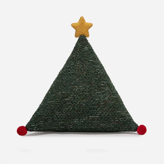 Coussin étoile de Noël en velours côtelé avec pompons, décoration festive des fêtes